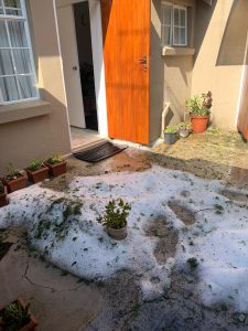 Die Klimaveränderung ist auch hier in Südafrika spürbar. Zwar ist es normal, daß es im Frühling und Sommer mehr regnet, als im Herbst und Winter. Normalerweise dauert es aber nur ein bis zwei Stunden und danach scheint die Sonne wieder. Mittlerweile aber regnet es tagelang, gibt es Hagel und Überschwemmungen.