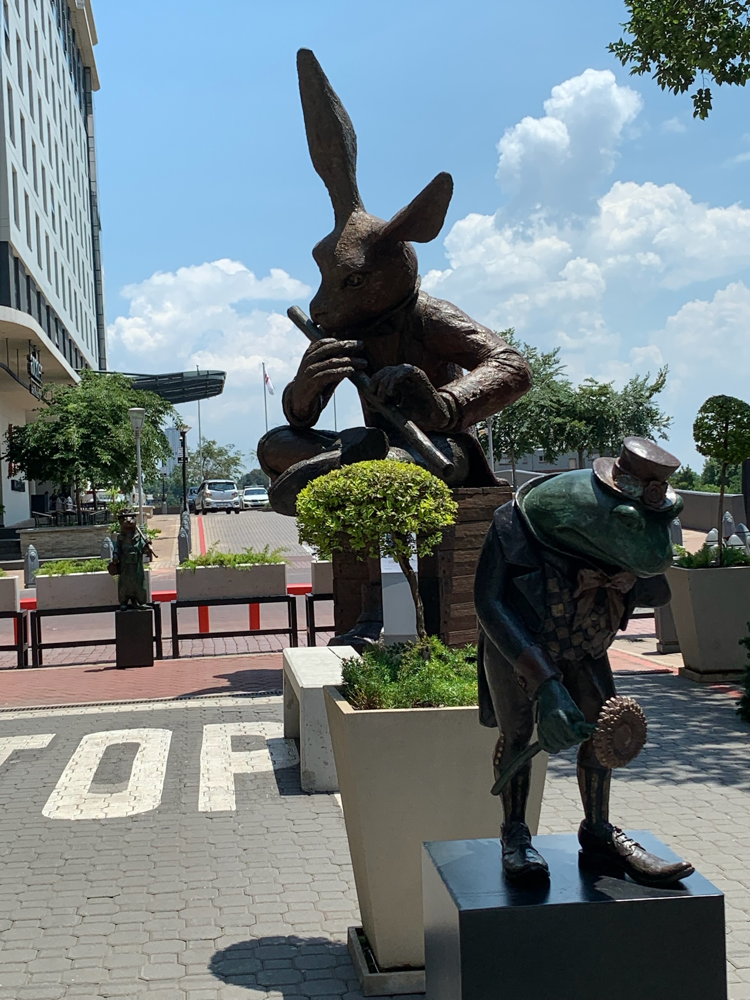 Melrose gehört zu den gehobenen Vierteln Johannesburgs. Eigentlich war der Besuch des Melrose Arch Shoppingcenters, wegen des angesagten schönen Wetters, für Mittwoch geplant. Wie es so ist, wenn man den Alltag von Schwester und Schwager mitlebt, wurden am Dienstag mehrere Lieferungen für den nächsten Tag avisiert. Also konnten wir nicht weg und verschoben den Ausflug auf den Donnerstag.