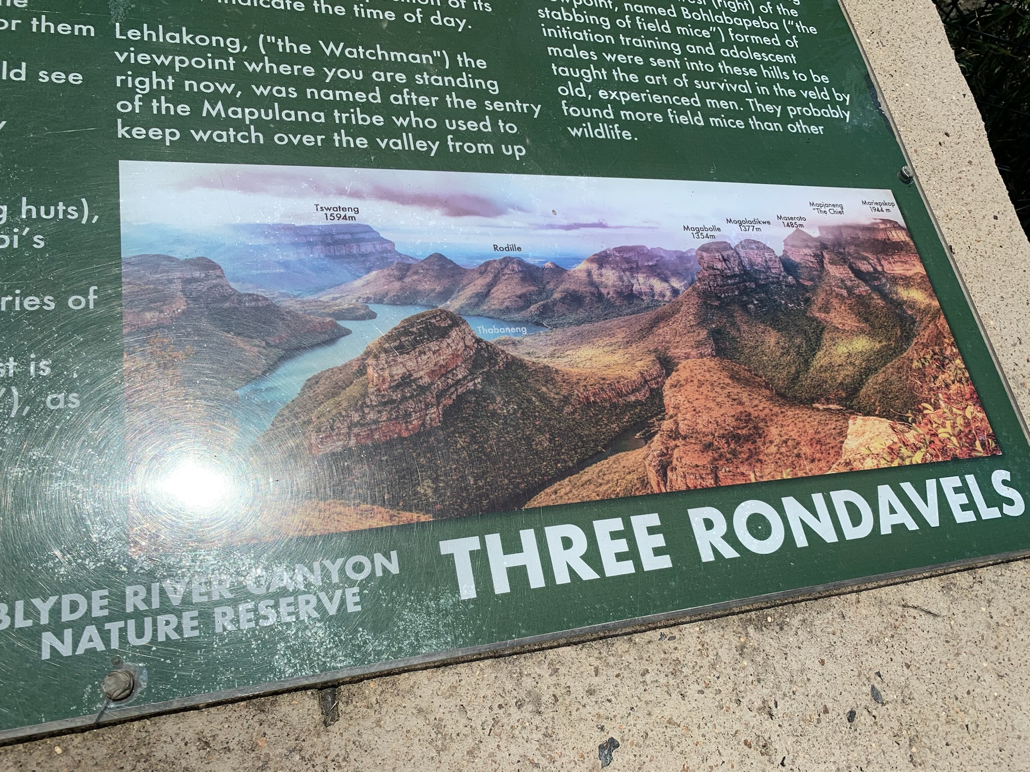 Unser erstes Ziel waren die „Three Rondavels“, eine spektakuläre Felsformation im Blyde Canyon. Nach unserem Bootsausflug am vorherigen Tag, schauten wir uns nun diese traumhafte Landschaft von oben an.