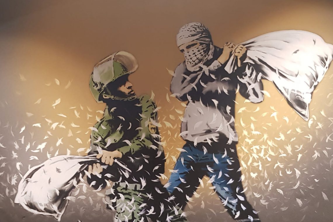 Vor Kurzem besuchten meine Freundinnen und ich die Banksy-Ausstellung in Mülheim/Ruhr. Es handelt sich um eine interaktive Ausstellung, die die Werke des Künstlers feiert. Gezeigt werden Skulpturen, Fotografien und Gemälde neben moderner Technologien wie Virtual Reality, Videoinstallationen und interaktive Stationen, mit denen wir die Werke Banskis selbst erleben konnten. Erwartet hatte ich, in der Hauptsache Fotografien seiner Street-Art zu sehen, aber meine Erwartungen wurden bei Weitem übertroffen.