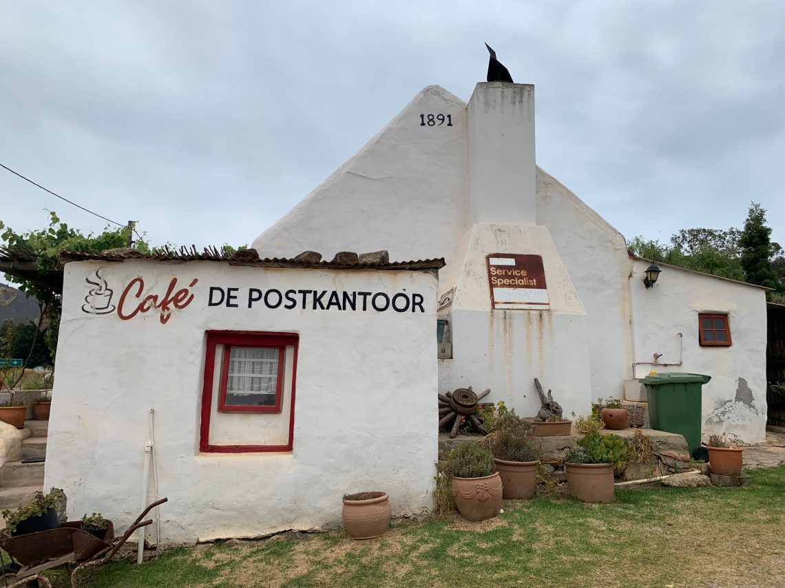 Unsere Fahrt über die Garden Route führte uns nun nach Hermanus. Da die reine Fahrzeit nur 2,5 Stunden betrug, hatten wir maßig Zeit unseren Zielort zu erreichen. Also machten wir einen kleinen Umweg zur Gemeinde Tesselaarsdal. Dort hielten wir am „De Postkantoor“, einem kleinen Country Coffee Shop, um zu frühstücken.