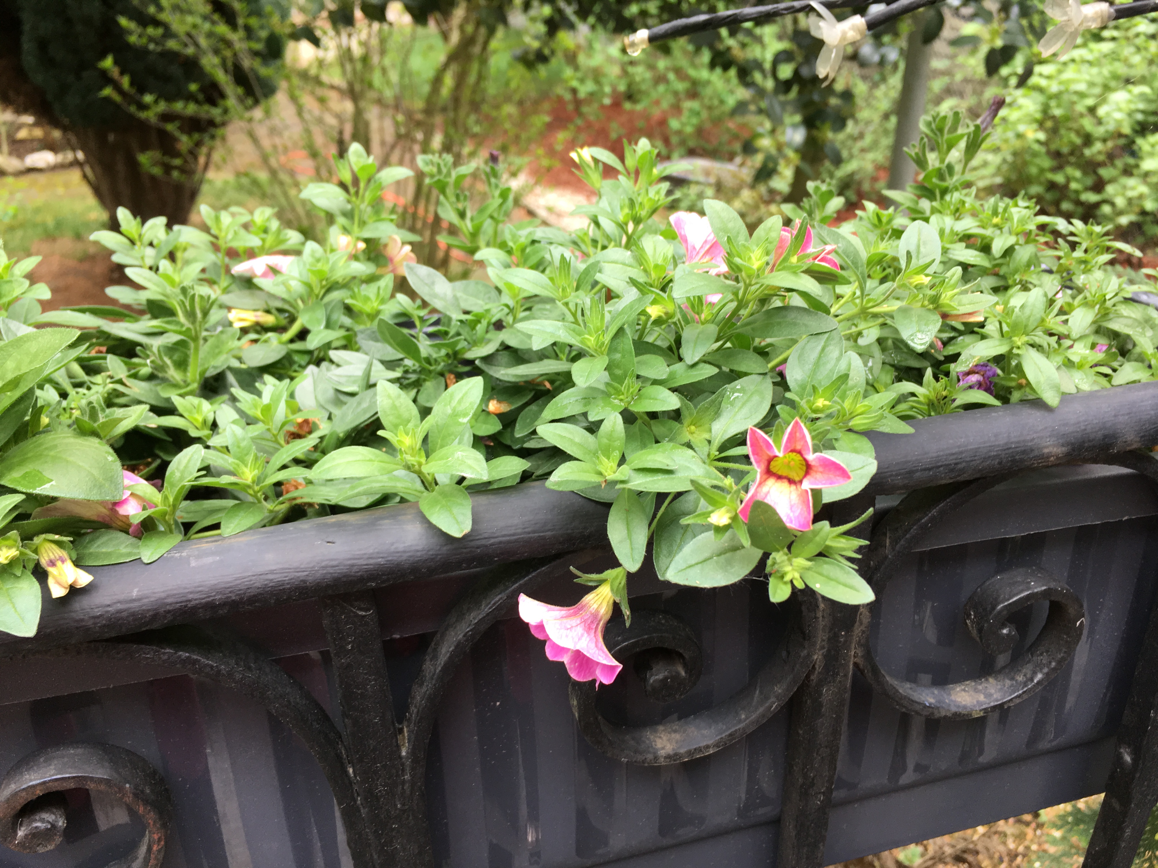 In diesem Jahr habe ich auf meiner Terrasse Zwerg-Hängepetunien und Zauberglöckchen gepflanzt. Das war letzte Woche. Die Pflänzchen sind frisch aus der Gärtnerei und müssen noch tüchtig wachsen.