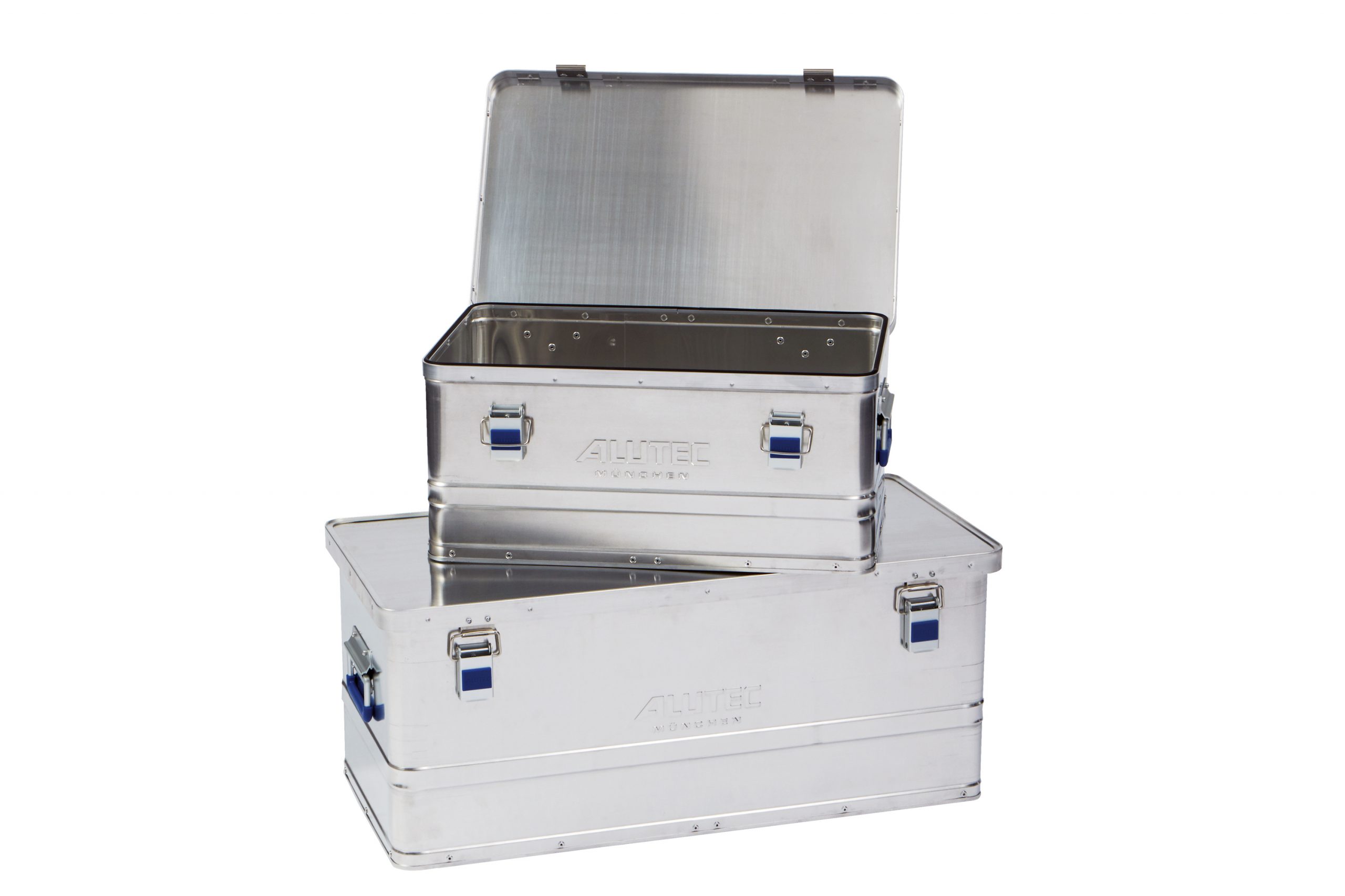 Als Spezialist für hochwertige Aluminiumboxen hat die ALUTEC MÜNCHEN GmbH intelligente und praxisgerechte Behälter-Lösungen für Ordnung, Transport und Lagerung sowohl im Privatbereich als auch im Handwerk und der Industrie geschaffen. Mit den Serien BASIC und CLASSIC bietet das Münchner Unternehmen eine Auswahl universell einsetzbarer Aluminiumboxen, die Stabilität und Leichtigkeit kombinieren und sich somit ideal als Transport- und Aufbewahrungsbehälter bewähren. Ausgestattet mit ergonomischen und rutschfesten Sicherheitstragegriffen, einer festen Rahmenkonstruktion und 0,8 Millimeter Wandstärke, lassen sich die Boxen bequem transportieren sowie platzsparend verstauen und stapeln.