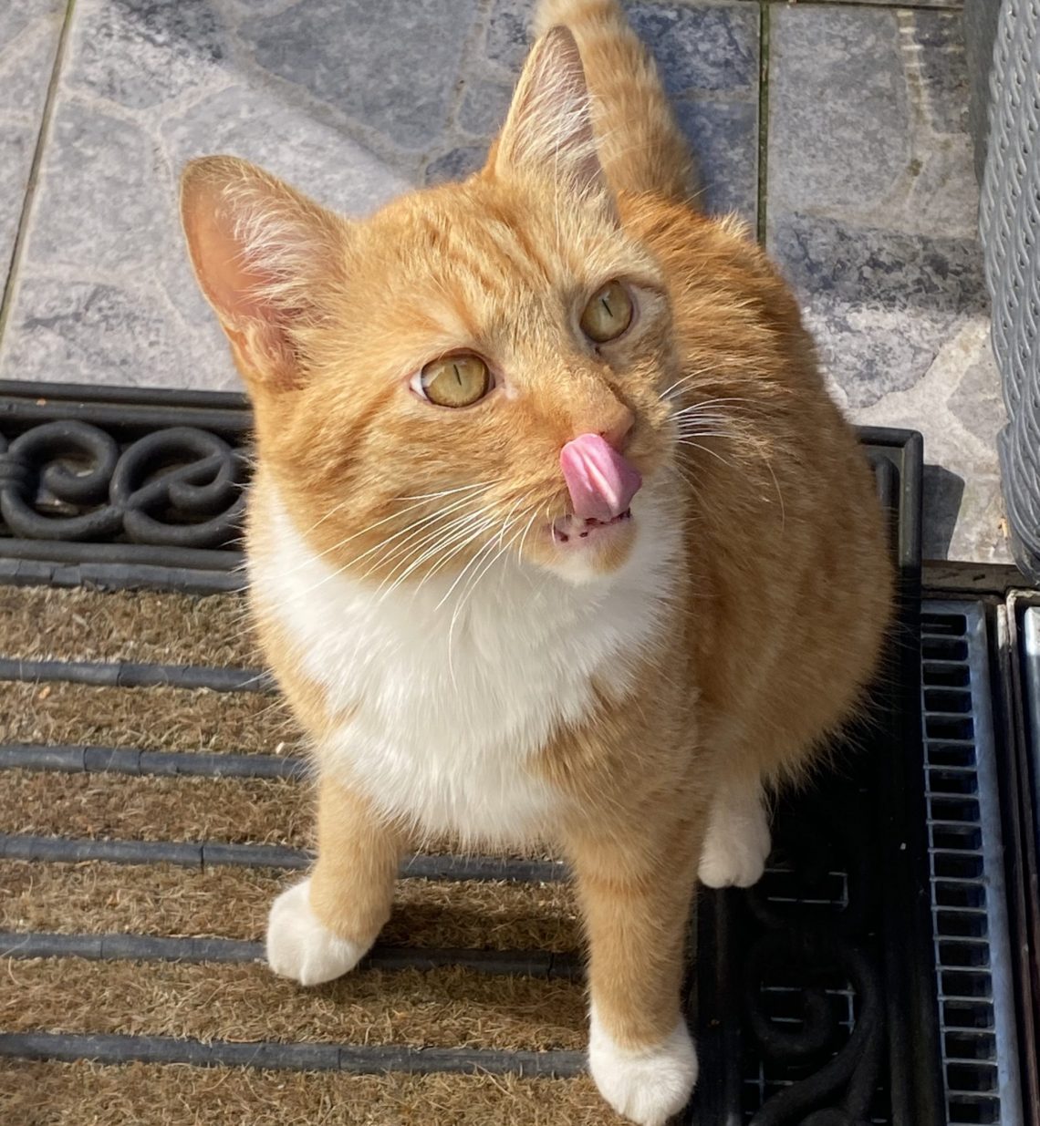 Er gehört ebenfalls meinen Nachbarn, aber irgendwie… na ja, gehört er so ein bisschen mir oder besser sich selbst. Er ist meist etwas scheu, ganz die feine Zurückhaltung in Person – äh, in Katze. Nur wenn ich mit feinen Leckerlis raschle oder eine Scheibe Schinken aus dem Kühlschrank ziehe, vergisst er plötzlich seine vorsichtige Art. Dann ist er da. Zack! Plötzlich sitzt er vor der Terrassentür (siehe Foto oben) und tut so, als wäre er zufällig vorbeigekommen.