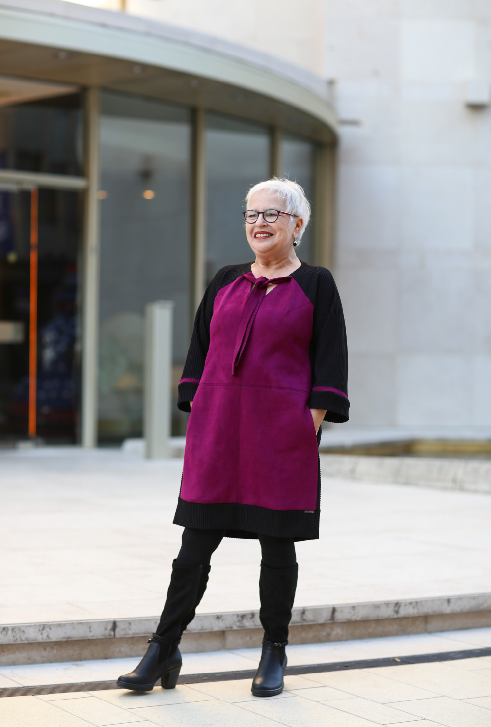 Wie gut, dass mein Kleid Taschen hatte. Verkauft wird das Kleid als Longpullover. Bei meiner Körperlänge von 1,56 m ist es allerdings ein kniebedeckendes Kleid.