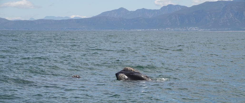 Eine der Hauptattraktionen von Hermanus ist die Möglichkeit Wale zu beobachten. Von Juni bis November kommen viele Wale an die Küste von Hermanus, um sich zu paaren und ihre Jungen zur Welt zu bringen. Aus diesem Grund hatten wir für den nächsten Morgen eine zweistündige Bootsfahrt mit Delfin- und Whalwatching gebucht. Allerdings war unsere Befürchtung, da sich der November bereits dem Ende neigte, dass wir keine Wale mehr zu sehen bekommen würden. Nach längerer Fahrt zeigten sich jedoch einige stattliche Exemplare, teilweise mit ihrem Nachwuchs. Das war schon ein schönes Erlebnis.