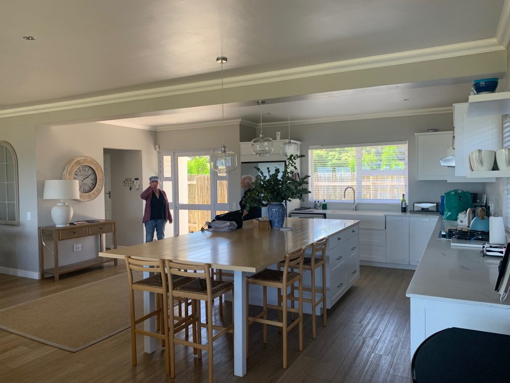 Danach fuhren wir auf direktem Weg in unser neues Zuhause auf Zeit, in dem wir herzlich empfangen wurden. Unsere erste Reaktion war, als wir das Haus betraten, ein gemeinschaftliches „Wow“. Was für eine Aussicht und welch tolles Ambiente! Diese Unterkunft war zwar die Teuerste auf unserer Reise, aber jeden Rand wert und mit Abstand die Beste auf der Gardenroute. „Seapearl Oceanfront Villa and Cottage„, wir wohnten in der Villa) bekommt von uns alle verfügbaren Sterne und eine dicke Empfehlung. Er tat uns schon bei der Ankunft leid, dass wir hier nur zwei Nächte verbringen sollten.