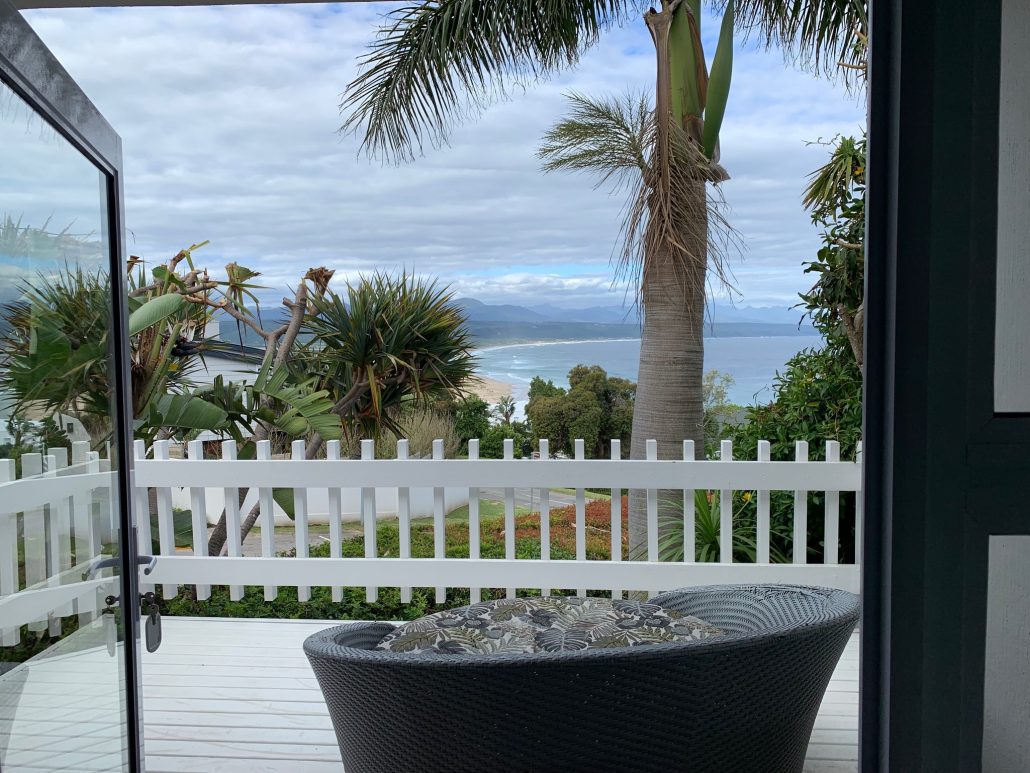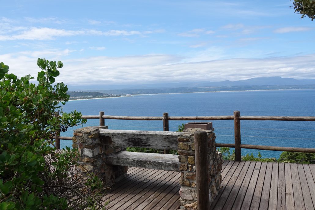 Die Wohnung, die meine Schwester angemietet hatte, war sehr schön. Jedoch stellten wir sofort fest, dass die Bilder im Internet leicht geschummelt waren. Dort sah es so aus, als hätten wir von der Terrasse direkten Meerblick. Es handelte sich aber um einen, wenn auch gemütlichen, Innenhof. Das Meer konnten wir nur sehen, wenn wir auf einer Leiter stehend, über die Hecke schauten. Richtigen Meerblick hatten wir nur vom Balkon des oberen Schlafzimmers. Info: Plett Holiday Stay in Plettenberg Bay