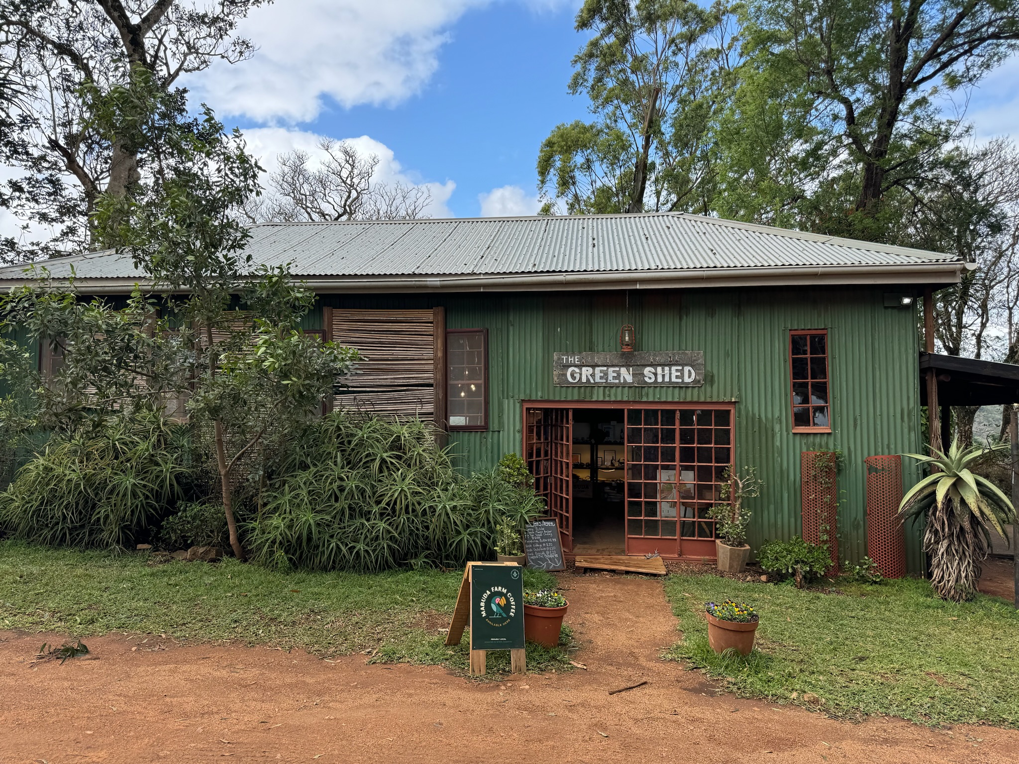 Nach ca. 2 Stunden Fahrtzeit machten wir einen kleinen Zwischenstop im Mabuda Guest Farm Coffee Shop. Hier stärkten wir uns mit hervorragendem Kaffee und hausgemachtem Kuchen.