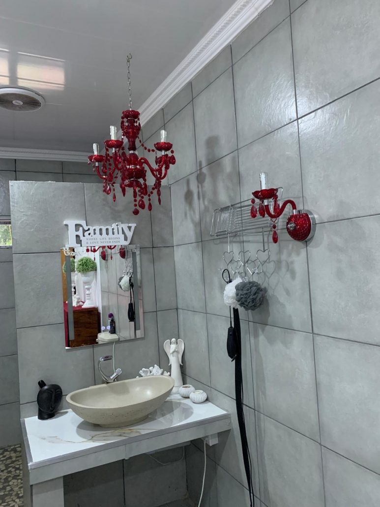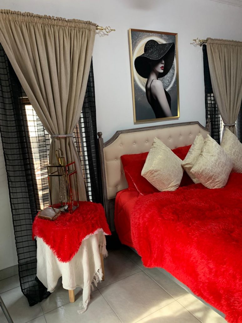 Um zurück nach Johannesburg zu kommen, würden wir im besten Fall 8 Stunden benötigen. Damit es für uns alle nicht so streßig wird, war eine Zwischenübernachtung eingeplant. In unserer Unterkunft (Welverdiend Guesthouse and Venue in Piet Retief) angekommen, staunten wir nicht schlecht. Die Zimmer waren wunderschön und ich Glückskind hatte das Hochzeitszimmer mit einer riesengroßen Badewanne. Hier ließ es sich aushalten.