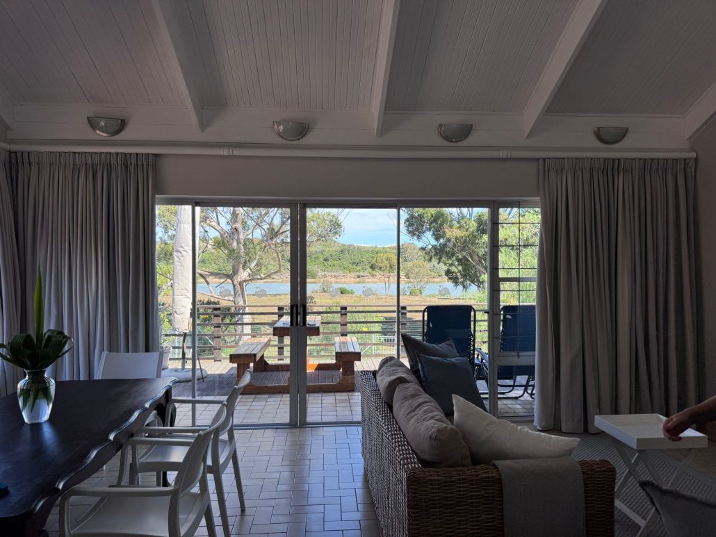 Von unserer Terrasse aus hatten wir einen wunderschönen Blick auf den Addo River. Neben Sauberkeit und einem guten Bett sind Terrassen auf unseren Reisen immer besonders wichtig. Warum? Ganz einfach: Wir verbringen die meiste Zeit draußen. Drinnen ist eher… Schlafstätte.