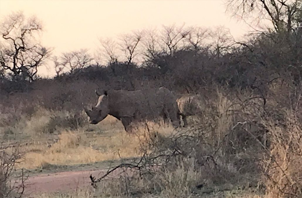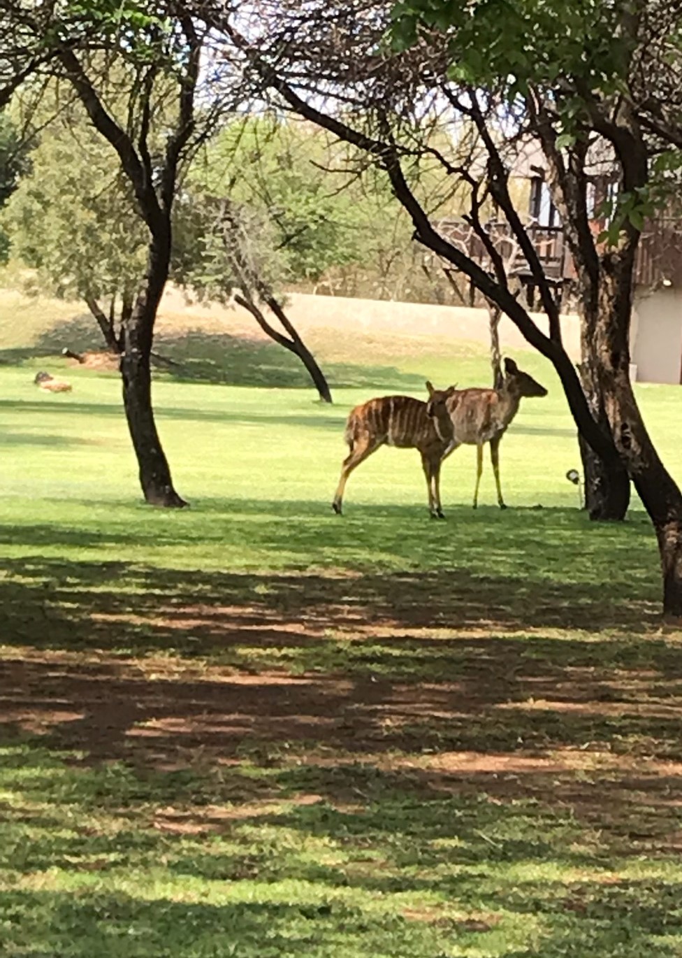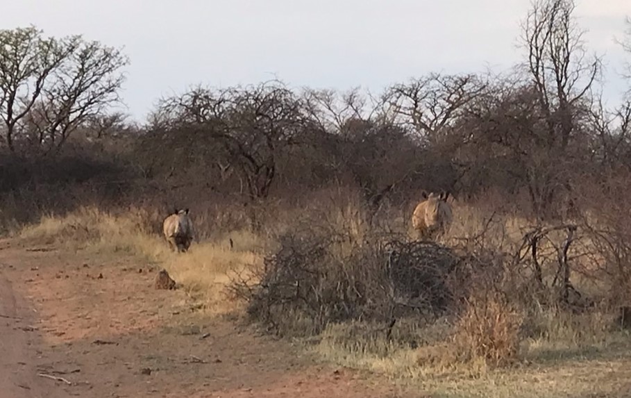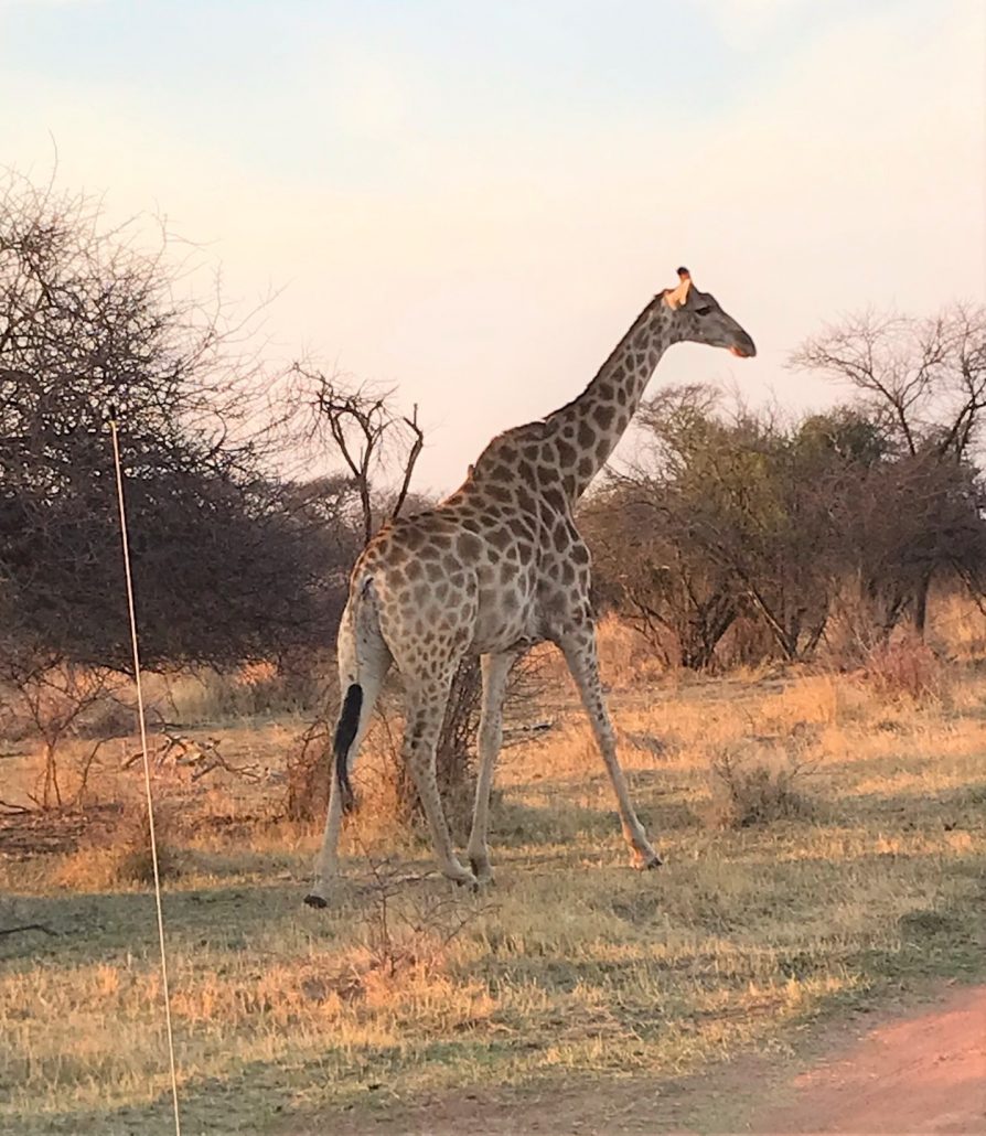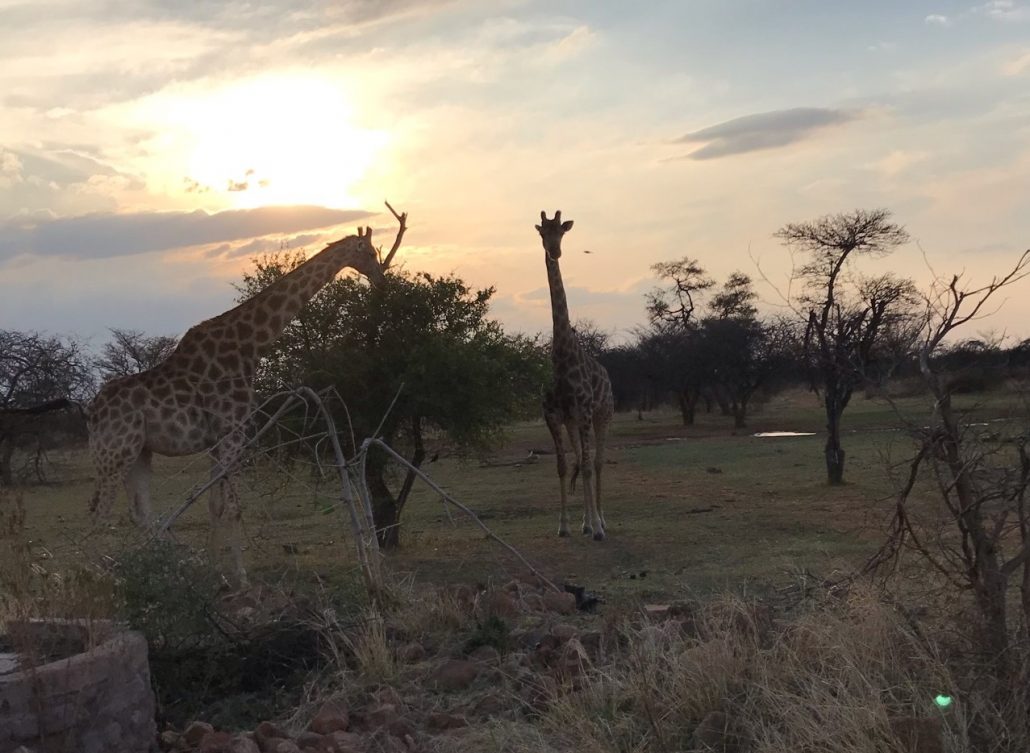 Marion hatte für uns 3 Tage im Dinokeng Game Reserve, nördlich von Soveto gebucht. Wir hatten einen Fahrer, der uns innerhalb einer guten Stunde dorthin brachte. Eigentlich war schlechtes Wetter angesagt, aber als wir am Zielort ankamen, war es sehr heiss und die Sonne schien. Wettervorhersagen kann man in Südafrika nicht unbedingt ernst nehmen. Das Wetter ändert sich oft von einer Minute zur anderen. Ein Jäckchen dabei zu haben, ist in jedem Fall ratsam.