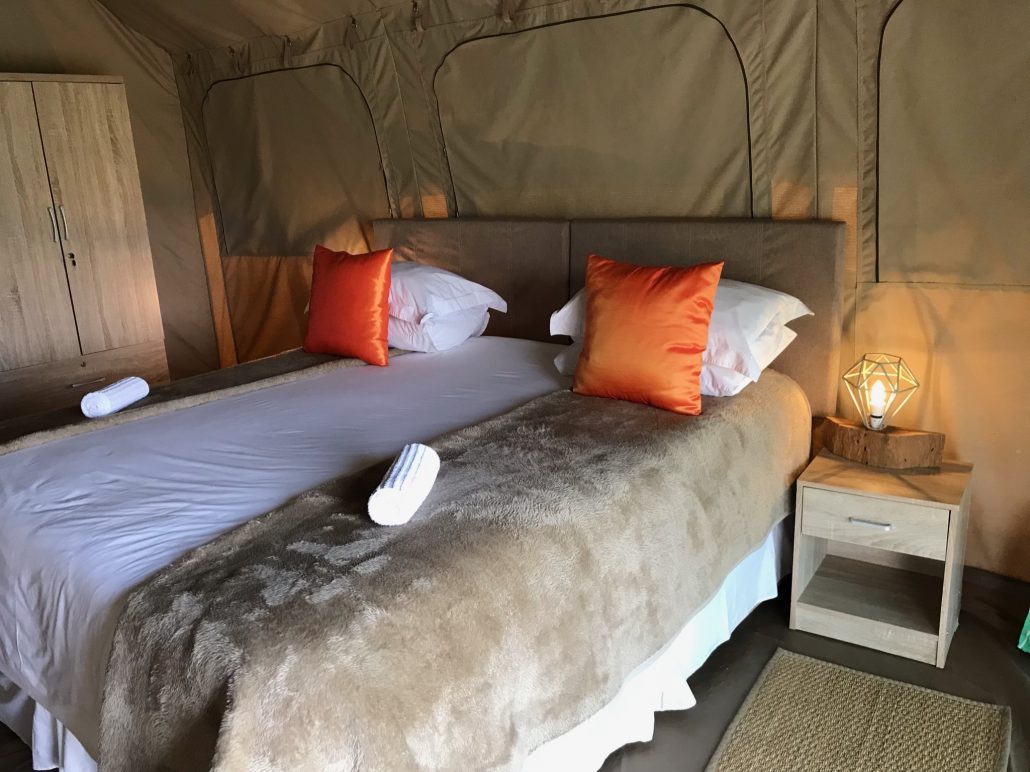 Das Essen allerdings war großartig, wie an allen folgenden Tagen auch. Länger im Dunkeln zu sitzen, war keine Option. Deshalb bestellten wir uns noch eine Flasche Wein zum Mitnehmen, die uns zum Zelt getragen wurde. Wir durften abends immer nur in Begleitung über das Gelände gehen. Es hätte ja sein können, dass uns ein wildes Tier begegnet.