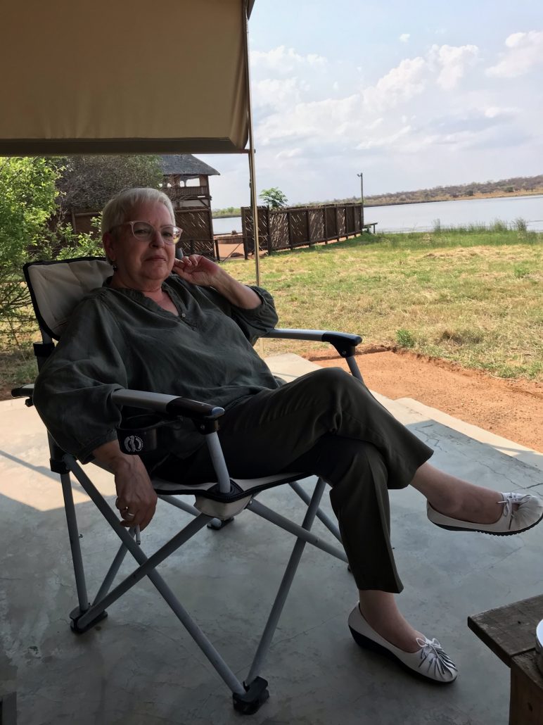 Wir machten es uns mit unserem Weinchen vor dem Zelt gemütlich. Marion hatte Musik vorgebereitet, die Filmmusik aus „Jenseits von Afrika“. Jetzt hatte sie es geschafft. Mir liefen die Tränen herunter. Es wurde noch ein wunderschöner Abend, bis wir gegen 22 Uhr müde und zufrieden ins Bett fielen. Schliesslich mussten wir am nächsten Morgen um 6 Uhr wieder im Auto sitzen. Wir waren ja nicht zum Spass auf Safari.