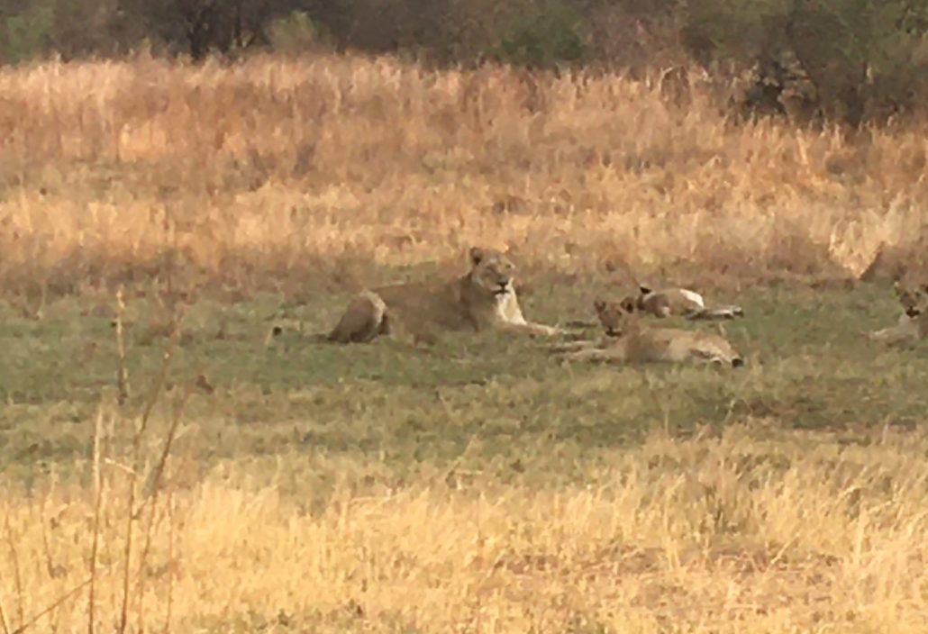 Gut angekommen durften wir gleich eine Kleinigkeit essen, bevor wir um 17 Uhr zur ersten game drive aufbrachen. Wir hatten einen weiblichen Guide, eine wunderschöne junge Frau mit enormen Fachwissen, dass sie begeistert an uns weitergab. Vom ersten Tag an, sassen wir gleich vorne im Auto, so dass wir eine gute Übersicht hatten. Gleich zu Anfang hatten wir das Glück, ausser vielen anderen Tieren, eine Löwin mit ihren Jungen zu sehen.