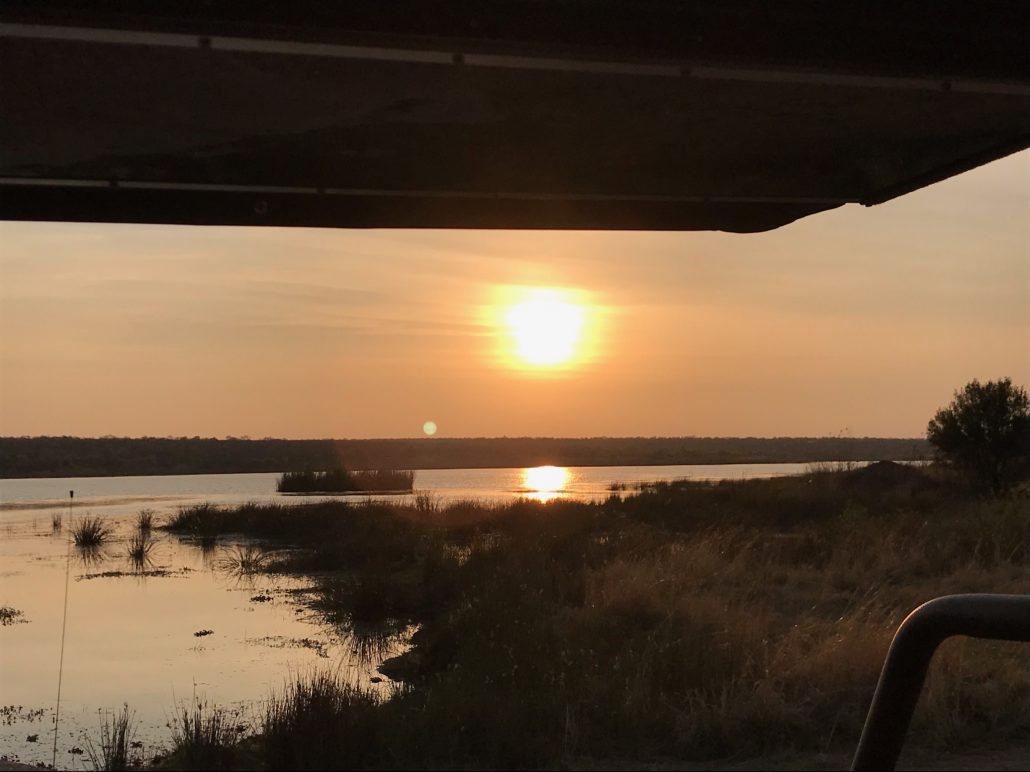 Nach dem Duschen, gemütlich vorm Zelt sitzen und plauschen, dann zum Lunch und schwupp, war es Zeit für die Abendtour. Jetzt bekamen wir zu sehen, was uns zu den „Big Five“ noch fehlte.